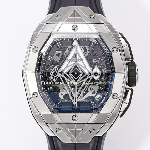 위블로 빅뱅 상블루 III 스켈레톤 기하학 크로노그래프 러버밴드 오토매틱 Hublot Big Bang Sang Bleu III Skeleton Geometric Chronograph Rubber Strap Automatic 42mm