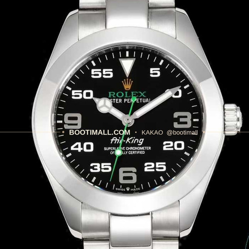 롤렉스 에어킹 스틸 블랙다이얼 그린핸즈 오토매틱 Rolex Air-King Steel Black Dial Green Hands Automatic 40mm |