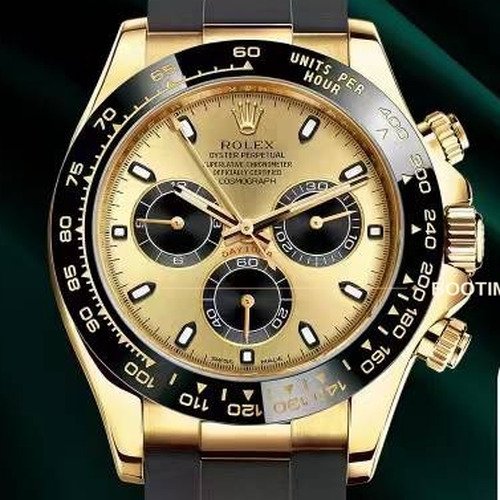 • 40mm 데이토나 케이스와 약 12.4mm 두께로 균형 잡힌 착용감을 제공합니다. • 블랙 다이얼, 야광 인덱스, 크로노그래프 서브 다이얼 구성을 갖췄습니다. • 세라믹 베젤에는 타키미터 스케일을 적용해 데이토나 특유의 스포티한 인상을 살렸습니다. • 7750 기반 자동 크로노그래프 무브먼트를 탑재했습니다. • 18K 옐로우 골드 감각의 케이스와 브레이슬릿 마감으로 고급스러운 분위기를 완성했습니다. • 정품 박스, 더스트백, 구매 영수증이 포함된 풀 패키지로 제공됩니다. |