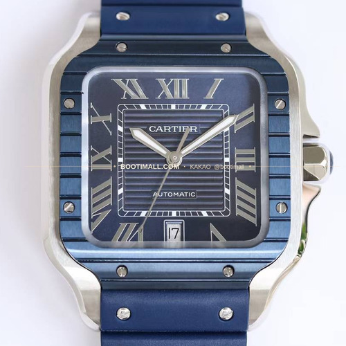 까르띠에 산토스 스틸 블루베젤 러버스트랩 오토매틱 Cartier Santos Steel Blue Bezel Rubber Strap Automatic 39.8mm |