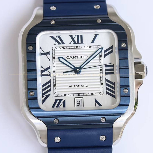 상품명 까르띠에 산토스 스틸 블루베젤 러버스트랩 오토매틱 Cartier Santos Steel Blue Bezel Rubber Strap Automatic 39.8mm