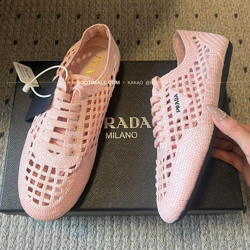 상품명 프라다 2026SS 메쉬 자수 레이스업 로우탑 스니커즈 Prada 2026 SS Mesh Embroidered Lace-Up Low Top Black Sneakers