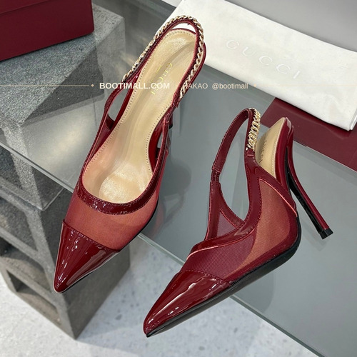 구찌 2026 메쉬 GG 로고 체인 포인티드토 샌들 Gucci 2026 Mesh GG Logo Chain Pointed Toe Black Sandals 10cm 1