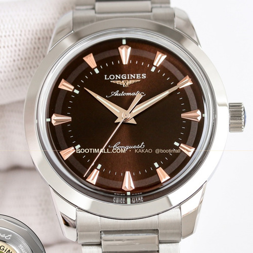 클래식한 쓰리핸즈 구성과 균형 잡힌 디자인이 조화를 이루는 롱진 콘퀘스트 모델은 전통적인 감성과 현대적인 착용감을 동시에 갖춘 시계입니다. 40mm 케이스와 10.8mm 두께로 제작되어 손목 위에서 안정적인 착용감을 제공하며, 단정한 실루엣이 다양한 스타일에 자연스럽게 어울립니다. 구성품: 정품 박스, 보증서, 쇼핑백, 구매 영수증 포함 롱진 콘퀘스트 남성용 시계입니다. 40mm 케이스와 10.8mm 두께로 제작되었습니다. 스틸 브레이슬릿 또는 가죽 스트랩 구성입니다. 자동 무브먼트가 적용된 모델입니다.