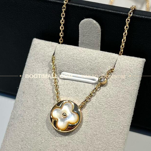 루이비통 모노그램 원형 핑크 자개 다이아 플라워 V 골드 네크리스 Louis Vuitton Monogram Round Pink Mother of Pearl Diamond Flower V Gold Necklace |