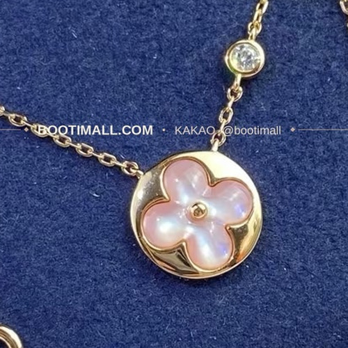 루이비통 모노그램 원형 핑크 자개 다이아 플라워 V 골드 네크리스 Louis Vuitton Monogram Round Pink Mother of Pearl Diamond Flower V Gold Necklace |