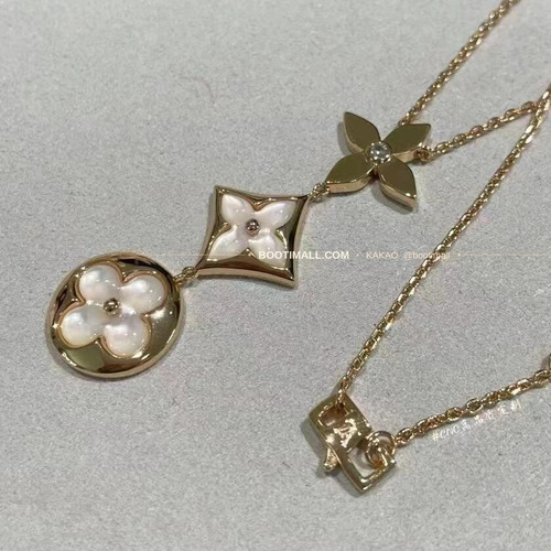 루이비통 컬러 블라썸 화이트 자개 트리플 플라워 V 골드 네크리스 Louis Vuitton Color Blossom White Mother of Pearl Triple Flower V Gold Necklace |