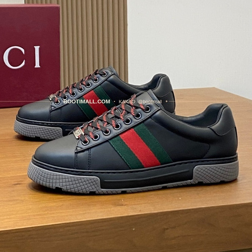 구찌 나파가죽 로고 레이스업 스니커즈 블랙 Gucci Nappa Calfskin Logo Lace-Up Sneakers |
