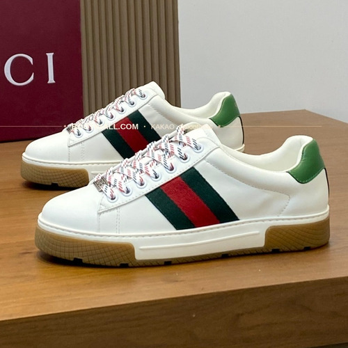 구찌 나파가죽 로고 레이스업 스니커즈 화이트 Gucci Nappa Calfskin Logo Lace-Up Sneakers |