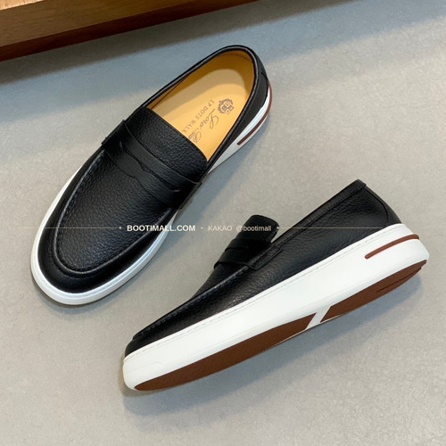 로로피아나 송아지가죽 스웨이드 믹스 로고 슬립온 블랙 Loro Piana Calfskin Suede Mix Logo Slip-On Sneakers |