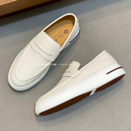 로로피아나 송아지가죽 스웨이드 믹스 로고 슬립온 화이트 Loro Piana Calfskin Suede Mix Logo Slip-On Sneakers |