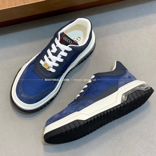 구찌 나파가죽 로고 레이스업 스니커즈 네이비 Gucci Nappa Calfskin Logo Lace-Up Sneakers |
