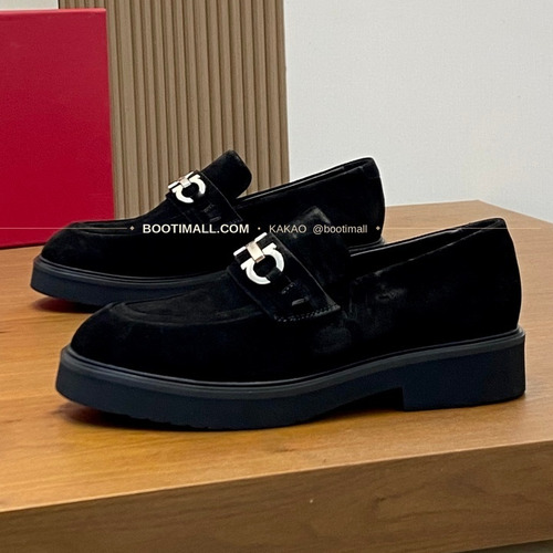 페레가모 페이턴트 송아지가죽 로고 슬립온 모카신 로퍼 스웨이드 블랙 Ferragamo Patent Calfskin Logo Slip-On Moccasin Loafers |