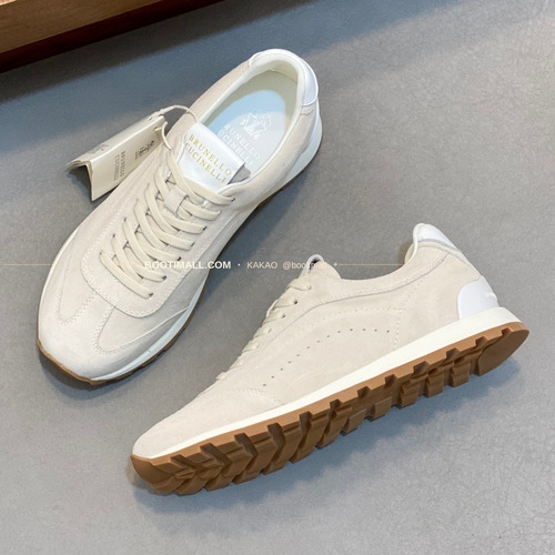 브루넬로쿠치넬리 송아지가죽 스웨이드 믹스 로고 레이스업 스니커즈 화이트 Brunello Cucinelli Calfskin Suede Mix Logo Lace-Up Sneakers |