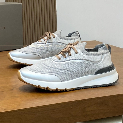 브루넬로쿠치넬리 스웨이드 플라이니트 믹스 슬립온 로퍼 그레이 Brunello Cucinelli Suede Flyknit Mix Slip-On Loafers |