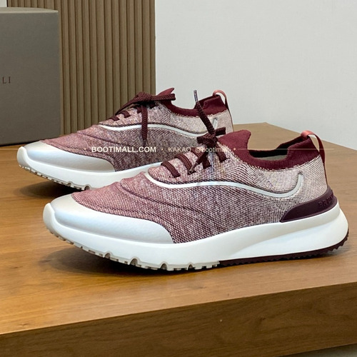브루넬로쿠치넬리 스웨이드 플라이니트 믹스 슬립온 로퍼 버건디 Brunello Cucinelli Suede Flyknit Mix Slip-On Loafers |