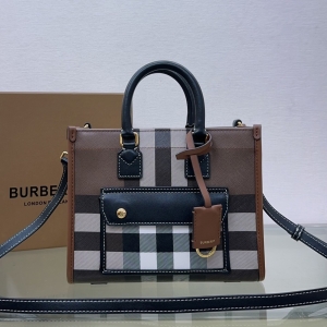 A. 상품 상세의 스펙 테이블에서 정확한 소재 정보를 확인하실 수 있습니다. Burberry는 프리미엄 가죽과 캔버스 소재를 사용합니다.