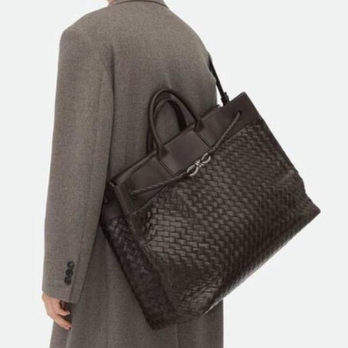 내용: 보테가 베네타 2026 신상 Andiamo Voyager 토트백입니다. 시그니처 인트레치아토 위빙과 부드러운 소가죽이 조화를 이루어 고급스럽고 견고한 실루엣을 완성합니다. 넉넉한 내부 수납공간과 포켓 구성으로 노트북, 서류, 여행 필수품까지 여유 있게 담을 수 있으며, 탈부착 가능한 롱 스트랩이 포함되어 토트와 크로스, 숄더로 다양하게 연출 가능합니다. 절제된 브라운 컬러와 메탈 매듭 장식이 포인트가 되어 비즈니스 미팅부터 주말 여행까지 세련된 스타일을 완성해 주는 실용적인 아이템입니다.