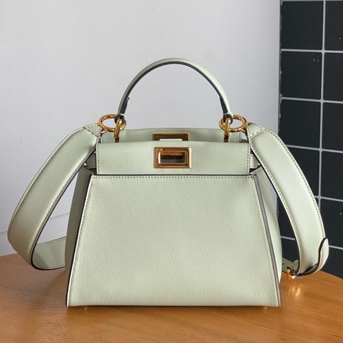 내용: 라이트그린 컬러가 돋보이는 FENDI 피카부 23cm 토트백입니다. 부드러운 소가죽으로 제작되어 가볍고 유연하며, 내부에는 FF 로고 자카드 안감과 골드 톤 메탈 장식이 조화를 이루어 고급스러운 분위기를 완성합니다. 상단 핸들과 탈부착 가능한 롱 스트랩이 함께 구성되어 토트, 숄더, 크로스바디 등 다양한 스타일링이 가능하며, 컴팩트한 사이즈지만 수납력이 좋아 데일리 백으로 활용하기 좋습니다. 세련된 실루엣과 견고한 마감으로 오랜 시간 소장 가치가 높은 아이템입니다.