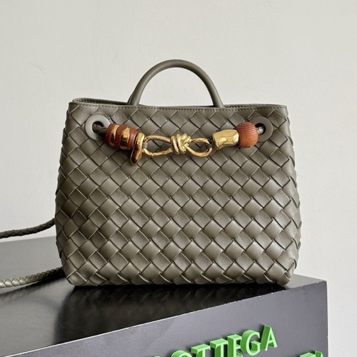 내용: 보테가 베네타의 신상 Andiamo 크로스바디 백입니다. 브랜드 시그니처인 인트레치아토 위빙으로 부드럽게 짜여진 바디에 골드 톤 메탈과 우드 디테일 장식이 더해져 세련된 포인트를 줍니다. 컴팩트한 사이즈지만 수납력이 좋아 지갑, 휴대폰, 립 등 데일리 소지품을 여유 있게 담을 수 있으며, 상단 핸들과 조절 가능한 숄더 스트랩으로 토트와 크로스 두 가지 스타일로 연출 가능합니다. 부드러운 가죽과 탄탄한 마감으로 오래 사용할 수 있는 실용적인 아이템입니다.