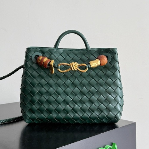 내용: BV의 신상 Andiamo 백으로, 브랜드 특유의 인트레치아토 위빙이 돋보이는 토트 크로스백입니다. 부드러운 소가죽을 촘촘하게 엮어 탄탄하면서도 유연한 실루엣을 완성했으며, 전면의 골드 메탈과 우드 디테일 장식이 세련된 포인트를 더합니다. 상단 핸들과 조절 가능한 숄더 스트랩을 갖춰 토트, 숄더, 크로스 등 다양한 연출이 가능하고, 실용적인 수납공간으로 데일리룩부터 격식 있는 스타일까지 두루 어울립니다. 고급스러운 그린 컬러가 어떤 코디에도 품격 있는 무드를 완성해 줍니다.