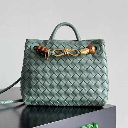 내용: BV의 신상 Andiamo 백으로, 브랜드 특유의 인트레치아토 위빙이 돋보이는 토트 겸 크로스백입니다. 부드러운 가죽을 촘촘히 엮어 가벼우면서도 탄탄한 실루엣을 완성했으며, 전면의 골드 메탈과 우드 디테일 장식이 세련된 포인트를 더해줍니다. 상단 핸들과 조절 가능한 숄더 스트랩으로 토트, 숄더, 크로스 등 다양한 연출이 가능해 데일리 출근룩부터 주말 캐주얼까지 폭넓게 활용할 수 있습니다. 내부 수납공간도 여유로워 지갑, 휴대폰, 파우치 등 필수 소지품을 깔끔하게 정리하기 좋습니다.