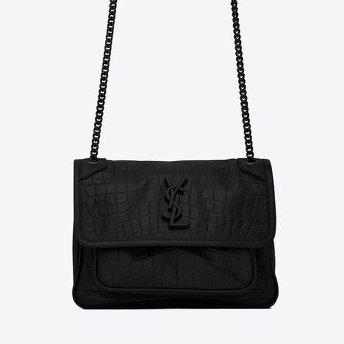 내용: Saint Laurent의 Niki Baby 니키 베이비 악어엠보 가죽 체인백은 블랙 컬러와 매트한 YSL 로고가 어우러져 세련된 분위기를 연출합니다. 빈티지한 크랙과 악어무늬 엠보가 더해진 소가죽 소재로 제작되어 가볍지만 탄탄한 내구성을 자랑하며, 두 개의 내부 수납공간과 뒷면 포켓으로 실용성을 높였습니다. 슬라이딩 체인 스트랩을 이용해 숄더백과 크로스백으로 자유롭게 연출할 수 있어 데일리룩부터 격식 있는 자리까지 폭넓게 활용 가능한 아이템입니다.