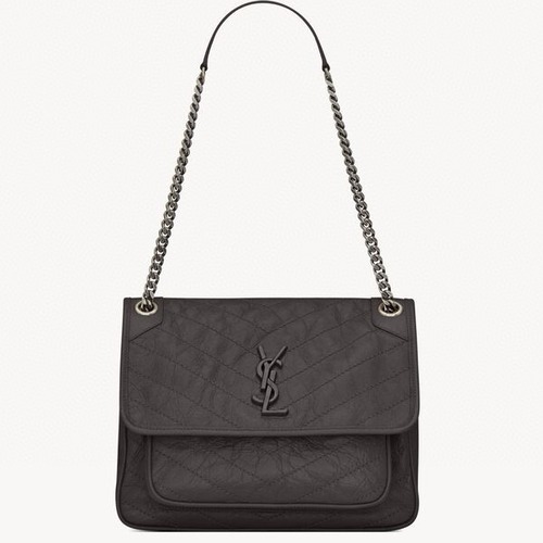 내용: Saint Laurent의 NIKI 중형 빈티지 레더 숄더백은 부드러운 소가죽에 자연스러운 크랙 텍스처를 더해 세련된 빈티지 무드를 완성한 아이템입니다. 플랩 전면에는 톤온톤 YSL 메탈 로고와 V자 퀼팅 스티치가 더해져 브랜드 아이덴티티를 강조합니다. 내부는 두 개의 메인 수납공간과 지퍼 포켓, 오픈 포켓으로 구성되어 실용적이며, 뒷면 외부 포켓은 자주 꺼내는 소지품 보관에 편리합니다. 슬라이딩 체인 스트랩으로 숄더와 크로스바디 두 가지 연출이 가능해 데일리룩부터 격식 있는 자리까지 폭넓게 활용할 수 있습니다.