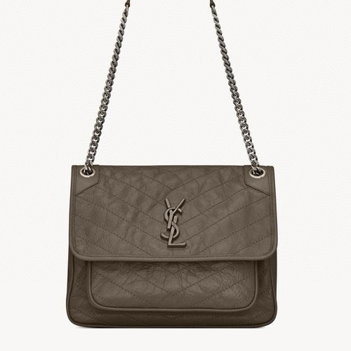내용: Saint Laurent의 NIKI 중형 빈티지 레더 숄더백은 부드러운 크랙드 가죽과 퀼팅 디테일이 조화를 이루는 아이코닉한 디자인의 백입니다. 전면의 오버사이즈 YSL 메탈 로고와 체인 스트랩이 시크한 무드를 더해주며, 플랩 아래에는 수납력이 좋은 이중 구조의 메인 수납공간이 마련되어 있어 실용적입니다. 어깨에 걸치거나 크로스바디로 연출할 수 있어 데일리룩부터 격식 있는 자리까지 폭넓게 활용 가능하며, 차분한 토프 컬러가 어떤 스타일에도 자연스럽게 어울립니다.