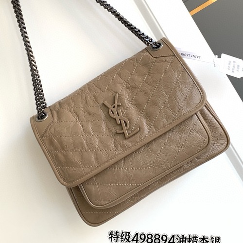 내용: 부드러운 빈티지 소가죽으로 완성된 SAINT LAURENT NIKI 중형 숄더백입니다. V자 퀼팅 스티치와 톤온톤 YSL 로고가 세련된 포인트를 더해주며, 여유 있는 수납공간과 두 개의 내부 포켓, 뒷면의 큰 외부 포켓으로 실용성을 높였습니다. 슬라이딩 체인 스트랩은 어깨에 멜 수도 있고 크로스로 연출할 수도 있어 다양한 스타일에 어울립니다. 은은한 유광의 오일 왁스 처리된 연그레이 컬러가 고급스러운 분위기를 완성해 데일리룩부터 격식 있는 자리까지 폭넓게 활용 가능합니다.
