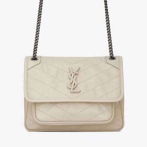 내용: Saint Laurent의 Niki Baby 체인백은 부드러운 엠보 가죽에 V자 퀼팅 스티치를 더해 세련된 실루엣을 완성한 미니 사이즈 숄더백입니다. 전면의 오버사이즈 YSL 로고와 메탈 체인 스트랩이 고급스러운 포인트가 되어 어떤 룩에도 쉽게 매치할 수 있습니다. 내부는 실용적인 수납공간과 포켓으로 구성되어 일상 소지품을 깔끔하게 정리할 수 있으며, 체인 스트랩 길이 조절로 숄더와 크로스백 두 가지 스타일로 연출 가능합니다. 데일리룩부터 격식 있는 자리까지 두루 활용하기 좋은 아이템입니다.