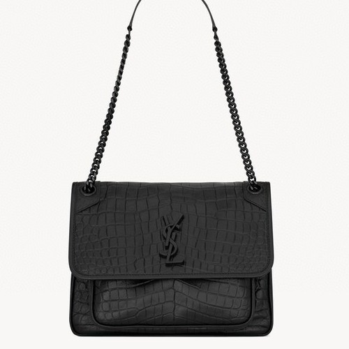 내용: Saint Laurent의 NIKI 중형 악어 엠보싱 가죽 숄더백은 전체를 감싼 크록 엠보 가죽과 톤온톤 YSL 로고가 조화를 이루는 아이코닉한 아이템입니다. 부드러운 가죽 위에 입체적인 패턴을 더해 고급스러운 광택과 질감을 살렸으며, 슬라이딩 체인 스트랩으로 숄더와 크로스백 두 가지 스타일로 연출할 수 있습니다. 플랩 아래에는 실용적인 전면 포켓과 여유 있는 메인 수납공간이 구성되어 있어 데일리룩부터 포멀한 스타일까지 다양한 코디에 활용하기 좋습니다.