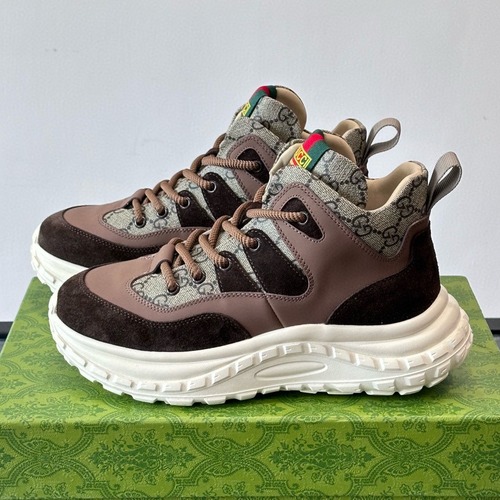 내용: 구찌 특유의 GG 모노그램 패브릭과 브라운 톤의 가죽, 스웨이드가 조화된 남성 하이탑 스니커즈입니다. 볼드한 화이트 러버 아웃솔이 안정적인 쿠셔닝을 제공해 장시간 착용에도 편안하며, 설포의 그린·레드 컬러 디테일이 브랜드 아이덴티티를 강조합니다. 캐주얼한 데님은 물론 조거 팬츠, 슬랙스와도 잘 어울려 일상부터 여행, 주말 나들이까지 다양한 스타일에 활용하기 좋습니다. 세련된 컬러 조합과 견고한 마감으로 실용성과 스타일을 동시에 만족시키는 아이템입니다.