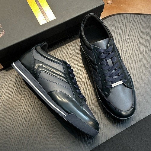 내용: Ermenegildo Zegna의 네이비 레더 스니커즈는 세련된 컬러와 미니멀한 디자인이 돋보이는 남성용 럭셔리 슈즈입니다. 매끈한 가죽과 사이드 패널의 입체적인 스티치 디테일이 고급스러운 실루엣을 완성하며, 얇은 러버 솔이 가벼운 착화감을 제공합니다. 앞코의 메탈 로고 장식과 톤온톤 슈레이스가 understated한 포인트가 되어 비즈니스 캐주얼부터 주말 스타일까지 폭넓게 매치하기 좋습니다. 일상에서 편안함과 품격을 동시에 원하는 남성에게 추천하는 아이템입니다.