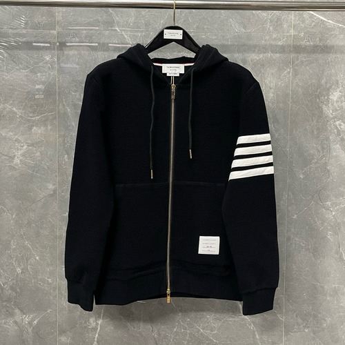 내용: Thom Browne 톰 브라운 사선 완장 강아지 자수 집업 후드티는 480g 중량감 있는 직조 면 소재로 제작되어 포근한 보온성과 탄탄한 실루엣을 제공합니다. 왼팔의 시그니처 사선 완장 디테일과 후드 뒤편의 귀여운 강아지 자수 장식이 브랜드 특유의 위트를 더해줍니다. 전면 지퍼 여밈과 캥거루 포켓으로 실용성을 높였으며, 블랙과 그레이 두 가지 컬러로 다양한 코디에 활용하기 좋습니다. 일상 캐주얼룩부터 여행, 주말 나들이까지 폭넓게 착용 가능한 남성 명품 후드집업 아이템입니다.