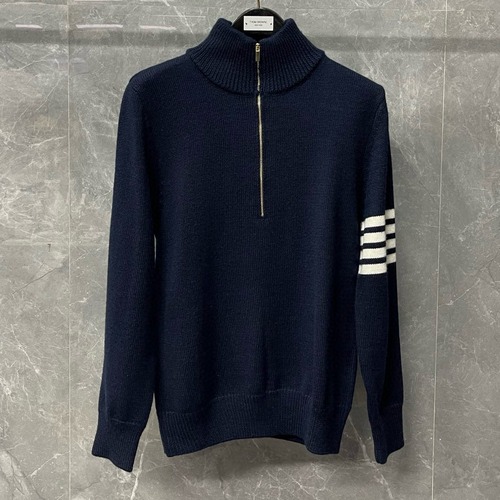 내용: 톰 브라운의 양모 하프집업 스트라이프 니트 스웨터는 42수 고급 양모 원사를 사용해 촘촘하게 편직한 제품으로, 부드러운 촉감과 뛰어난 보온성을 자랑합니다. 하이넥 하프집업 디자인으로 지퍼를 올리면 목을 따뜻하게 감싸주고, 내리면 단정한 카라 형태로 연출되어 다양한 스타일링이 가능합니다. 소매의 시그니처 스트라이프 디테일과 뒷목 삼색 테이프가 브랜드 특유의 감성을 더해 주며, 적당한 여유핏으로 단독 착용은 물론 셔츠나 티셔츠 위에 레이어드하기에도 좋습니다. 오피스룩부터 캐주얼 데일리룩까지 폭넓게 활용할 수 있는 실용적인 니트 아이템입니다.