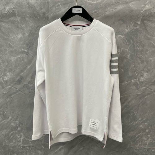 내용: 톰 브라운의 사선 완장 클래식 라운드넥 니트 스웨터입니다. 은은한 멜란지 그레이 컬러에 왼팔의 시그니처 사선 스트라이프와 밑단의 화이트 네임 라벨, 옆트임 안쪽의 삼색 테이프 디테일이 더해져 브랜드 아이덴티티를 강조합니다. 전후 언밸런스 기장과 여유 있는 실루엣으로 편안하면서도 세련된 핏을 연출하며, 남녀 모두 착용하기 좋은 유니섹스 디자인입니다. 단독으로는 물론 셔츠나 아우터와 레이어드해 가을·겨울 시즌 데일리 룩으로 활용하기 좋습니다.