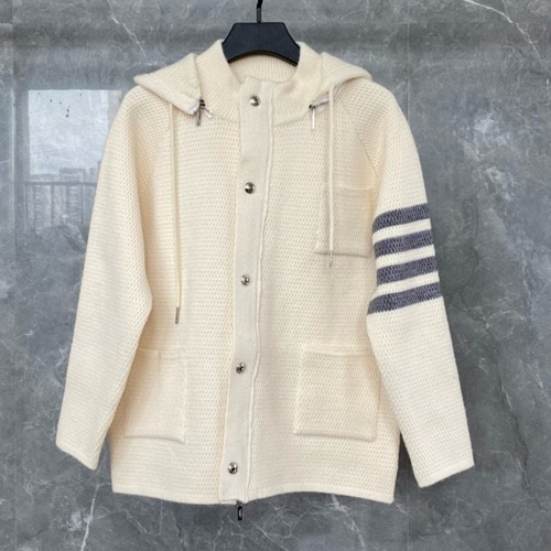 내용: 톰 브라운 특유의 사선 스트라이프 디테일이 돋보이는 니트 후드 집업 재킷입니다. 도톰한 짜임의 면·양모 혼방 소재로 제작되어 보온성이 뛰어나며, 전면 지퍼와 스냅 버튼 이중 여밈으로 바람을 효과적으로 막아 줍니다. 탈부착 가능한 후드 디자인으로 캐주얼한 후드 재킷부터 단정한 니트 재킷까지 다양한 스타일링이 가능하며, 넉넉한 실루엣과 실용적인 포켓 디테일로 일상에서 편안하게 착용할 수 있습니다. 그레이, 화이트, 장청색 등 다양한 컬러로 남녀 모두에게 잘 어울리는 아이템입니다.