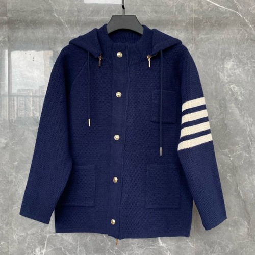 내용: 톰 브라운 특유의 사선 스트라이프 디테일이 돋보이는 니트 후드 집업 재킷입니다. 도톰한 짜임의 면·양모 혼방 소재로 제작되어 보온성이 뛰어나며, 전면 지퍼와 스냅 버튼 이중 여밈으로 바람을 효과적으로 막아 줍니다. 탈부착 가능한 후드 디자인으로 캐주얼한 후드 재킷부터 단정한 니트 재킷까지 다양한 스타일링이 가능하며, 넉넉한 실루엣과 실용적인 포켓 디테일로 일상에서 편안하게 착용할 수 있습니다. 그레이, 화이트, 장청색 등 다양한 컬러로 남녀 모두에게 잘 어울리는 아이템입니다.