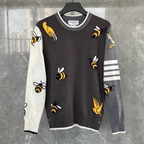 내용: Thom Browne 톰 브라운 TB23 FW 벌 자수 라운드넥 니트 스웨터는 브랜드 특유의 감성을 담은 시즌 아이템입니다. 그레이 컬러 바디에 대비되는 화이트와 라이트 그레이 소매가 배색되어 있으며, 전체에 벌과 새 모티브 자수가 더해져 유니크한 포인트를 줍니다. 한쪽 소매의 시그니처 4선 디테일과 밑단, 소매단의 버튼 장식이 클래식한 실루엣에 현대적인 감각을 더해줍니다. 셔츠와 함께 레이어드하면 포멀한 룩에도 잘 어울리며, 단독으로 착용 시 캐주얼한 스타일링이 가능합니다. FW 시즌에 적합한 두께감으로 일상과 출근룩 모두에 활용하기 좋은 니트입니다.