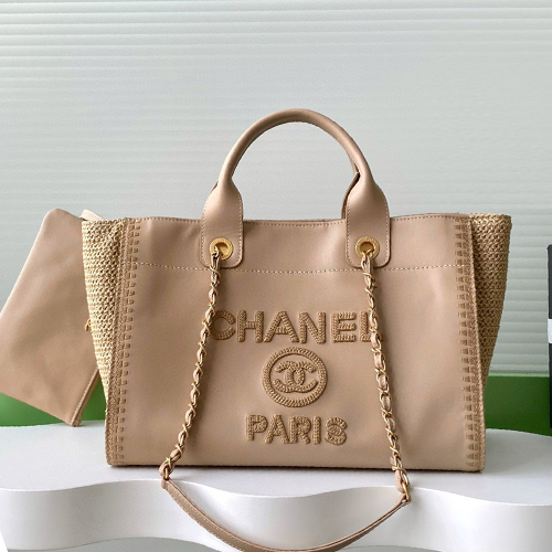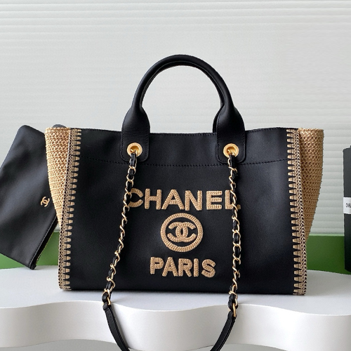 CHANEL 샤넬 25시즌 파리 로고 라탄 콤비 쇼퍼 토트백 AS3351