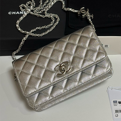 Chanel 샤넬 2025 신상 WOC 체인 메탈릭실버 스몰 크로스백 3839