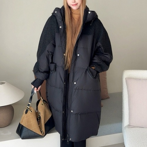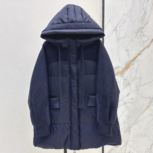 Max Mara 막스마라 25FW 울 니트 배색 후드 구스다운 패딩 |