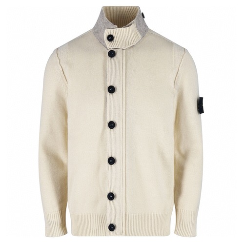 Stone Island 스톤아일랜드 울 하이넥 버튼 가디건 (아이보리/그레이) |