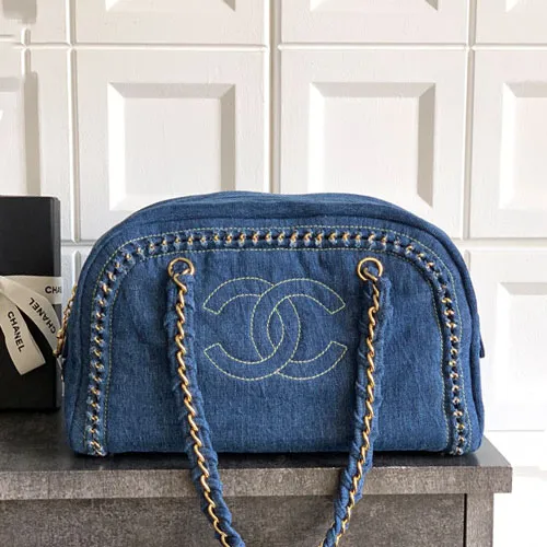 샤넬 데님 CC 보스턴백 골드블루 #2240000601656