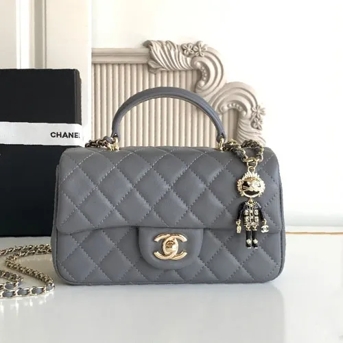 샤넬 CF 뉴미니 램스킨 내장칩 탑핸들 다크그레이 금장참 20CM #AS2431