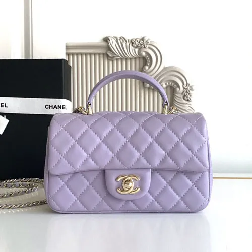 샤넬 CF 뉴미니 램스킨 내장칩 탑핸들 퍼플 금장 20CM #AS2431