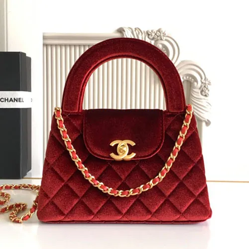 샤넬 실크 벨벳 켈리백 미니탑핸들 파우더레드 19cm AS4416
