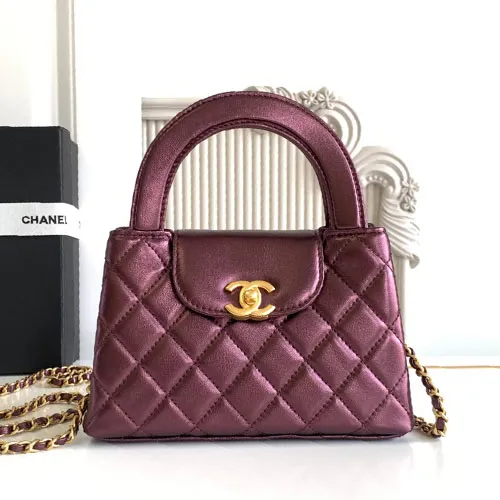 샤넬 실크 램스킨 켈리백 미니탑핸들 메탈버건디 19cm AS4416