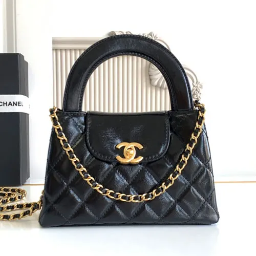 샤넬 실크 램스킨 켈리백 미니탑핸들 블랙 19cm AS4416